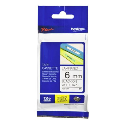Brother TZe-211 6mm x 8m Black on White Tape