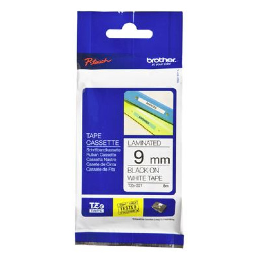 Brother TZe-221 9mm x 8m Black on White Tape