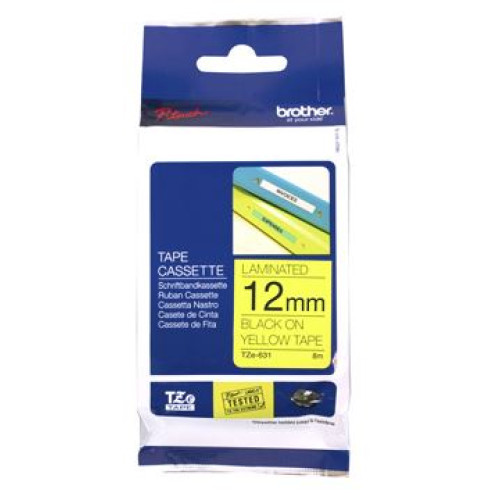 Brother TZe-631 12mm x 8m Black on Yellow Tape