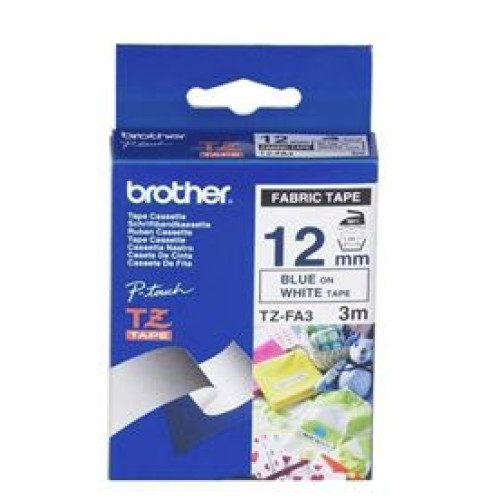 Brother TZe-FA3 12mm x 3m Blue on White Fabric Tape