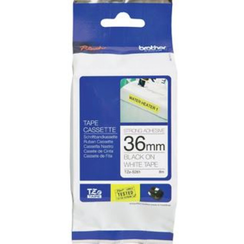 Brother TZe-S261 36mm x 8m Extra Strength Black on White Tape