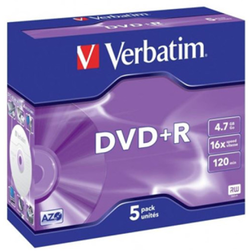 • Verbatim DVD+R 4.7GB 16x 5 Pack with Jewel Cases