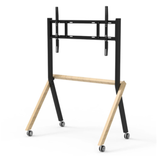 Introducing the Karter Synergy mobile stand, a stunning combination of black and American oak steel that provides the perfect synergy between your touchscreen and stand. Crafted with precision and attention to detail, this stand is designed to be both functional and visually appealing. The black finish provides a sleek and modern look, while the oak accents offer a warm and inviting feel to any workspace. With its sturdy construction the Synergy is highly versatile and can fit screens from 55" up to 105". Speedy to assemble complete with 3" hubless lockable casters and handy cable management.