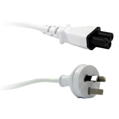 3 Pin Power (M) to C5 Clover (M) White 2m Power Cable
